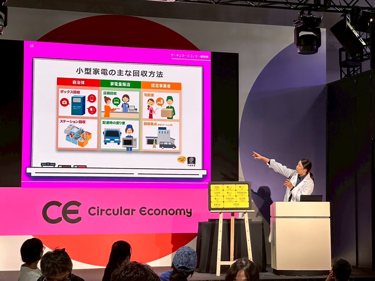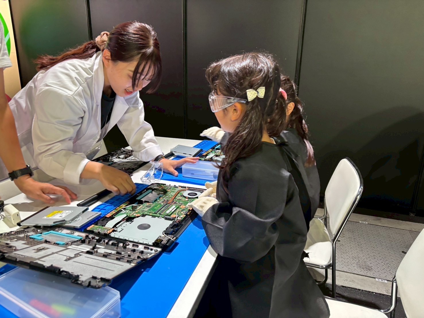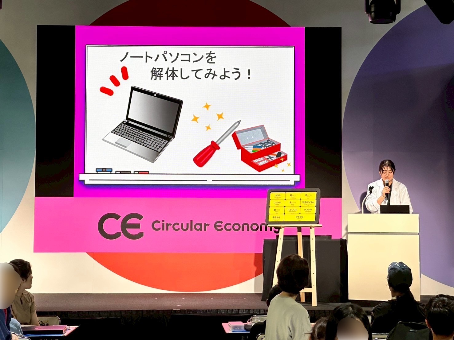 このイベントでは、参加者がサーキュラーエコノミーを楽しく体感できるエリアや、ゲストトーク、参加型企画が楽しめる特設ステージを設け、子供から大人まで楽しみながら学ぶことができます。弊社はその中の「いらないパソコンからレアメタルを救い出せ!パソコン大解剖教室」(一般社団法人小型家電リサイクル協会 主催)に講師として参加させていただきました。