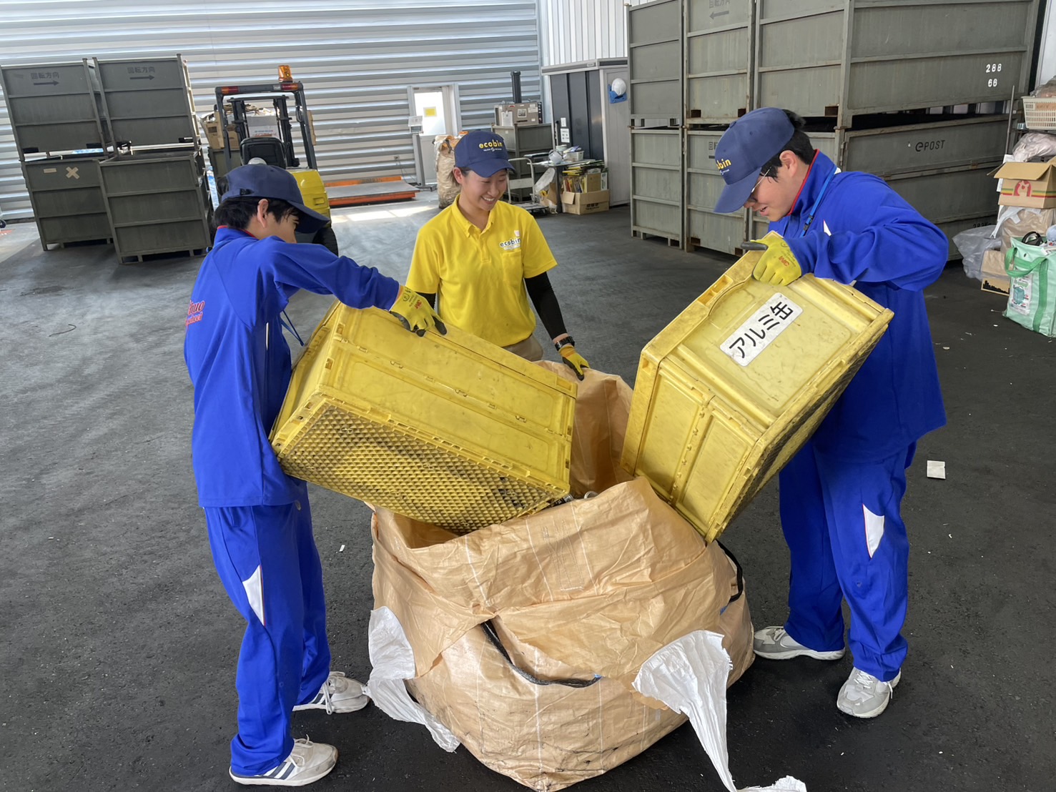 職場体験では、えこ便での接客や資源の選別などリサイクルの仕事を体験してもらいました。
