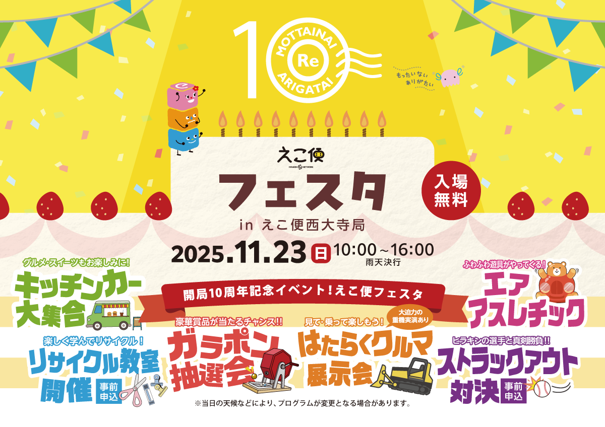 なお、当日のえこ便フェスタでは日頃のご愛顧への感謝を込めて、ご家族みんなで楽しめるイベント盛りだくさんでお待ちしております。