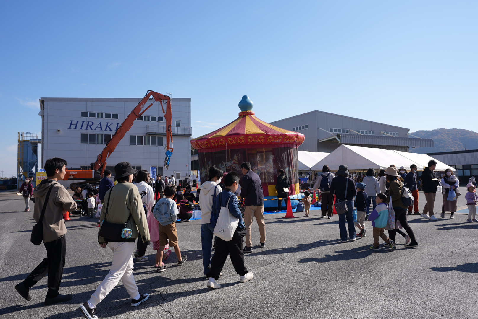 フェスタでは、はたらく車展示会、駄菓子や新鮮な野菜の販売、ネパールコーヒーをはじめ様々なキッチンカー、リサイクル教室、ヒラキンソフト部とのストラックアウト対決など様々なイベントが開催されました。