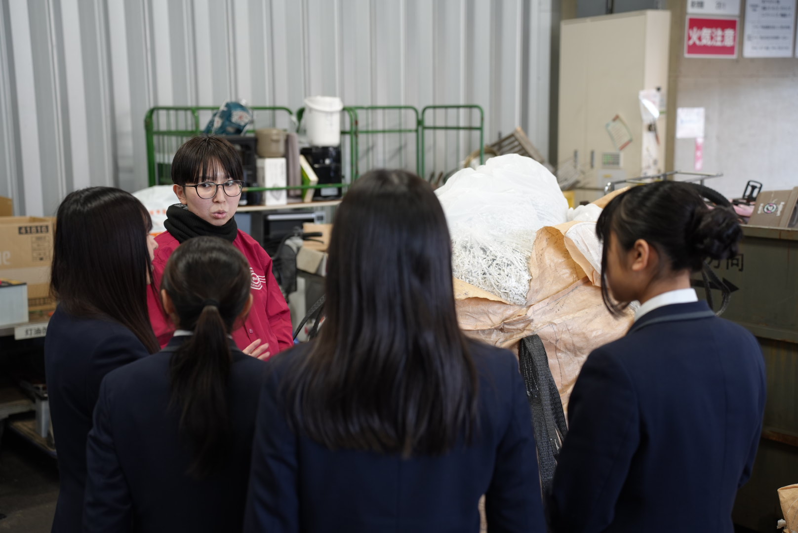 見学では、えこ便の仕組みや、ゼミで研究している古紙リサイクルについて学んでもらいました。