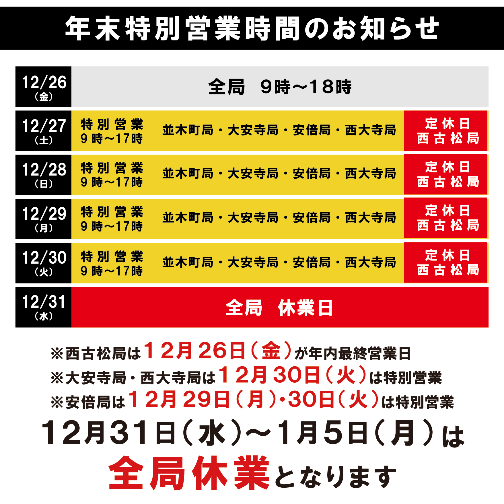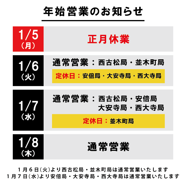 ◼︎大安寺局、並木町局、西大寺局、安倍局
