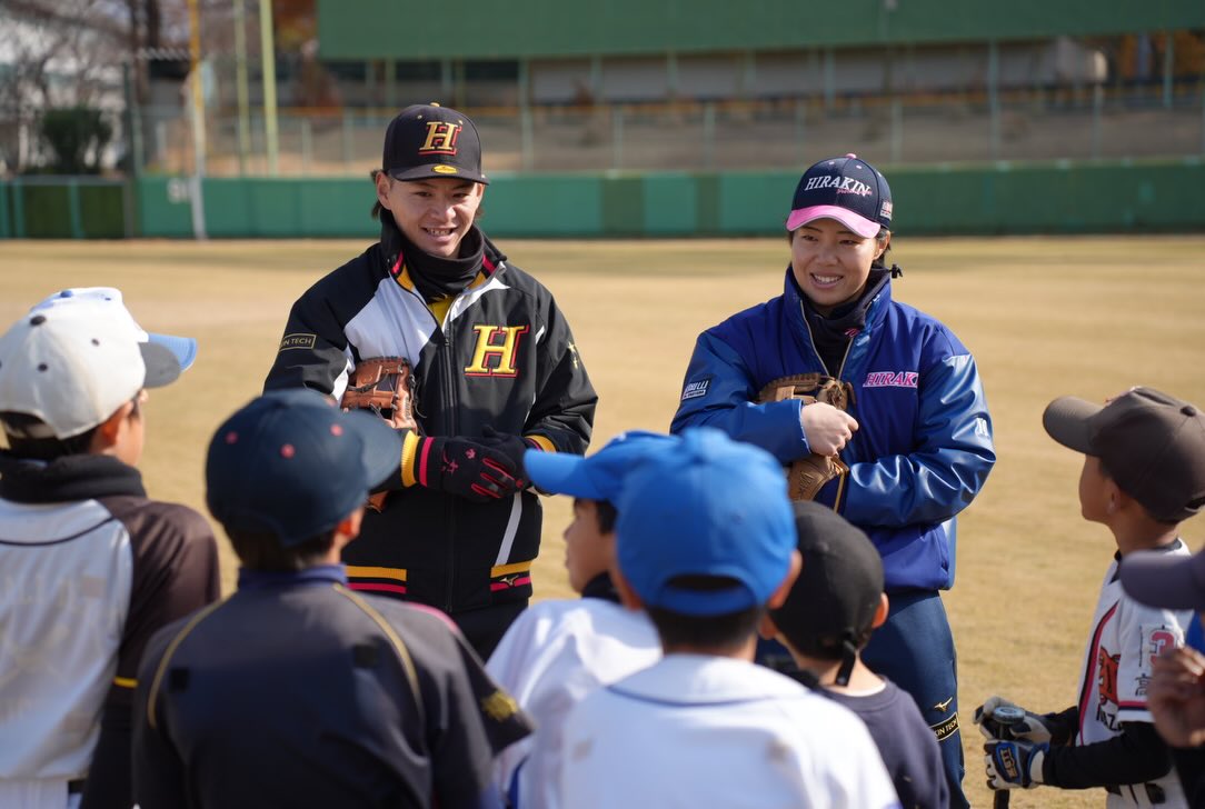 毎年恒例となったこのソフトボール教室に今年は、約200名の小学生が参加し、ソフトボールを通じた交流が行われました。最後にはヒラキンカレンダーをプレゼントし、サインを求める子どもたちで賑わいました。