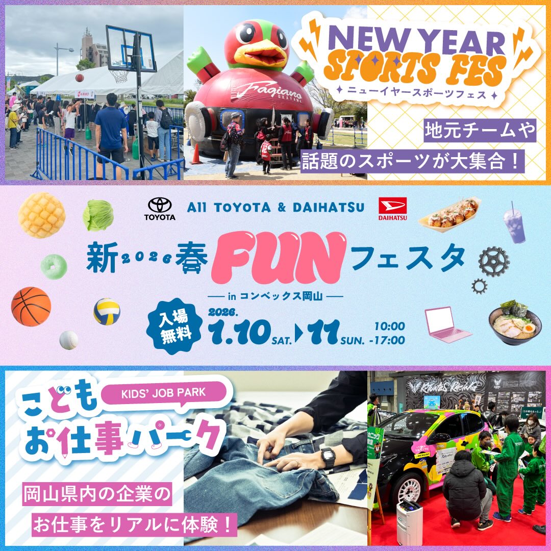1月10日(土)・11日(日)にコンベックス岡山で開催される「オールトヨタ&ダイハツ 新春FUNフェスタ2026」 に、男子・女子ソフトボール部が参加します。