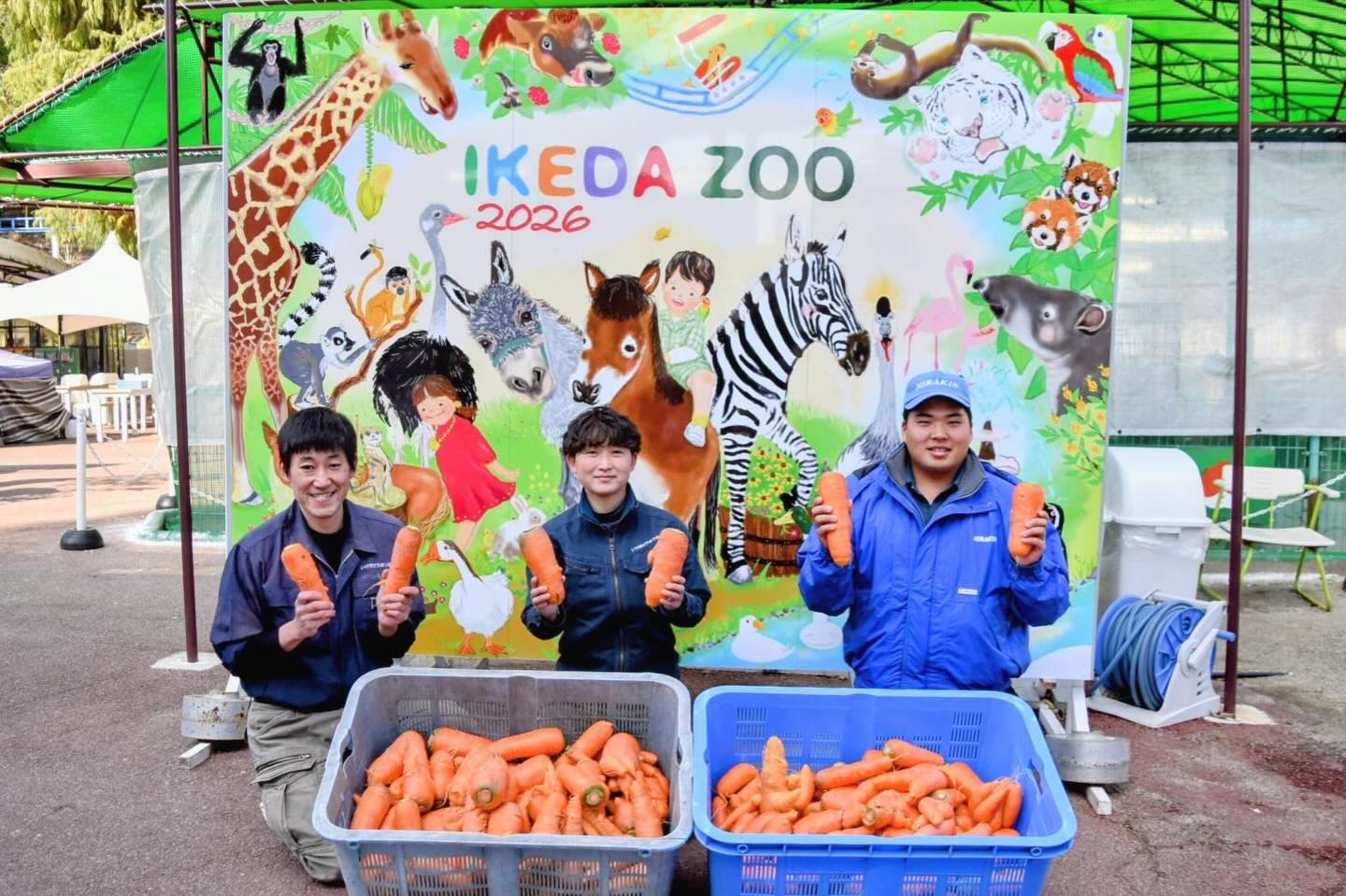 2026年1月6日、葉豆瑠農園で収穫した規格外野菜が池田動物園の動物たちに食べてもらえることになりました。
