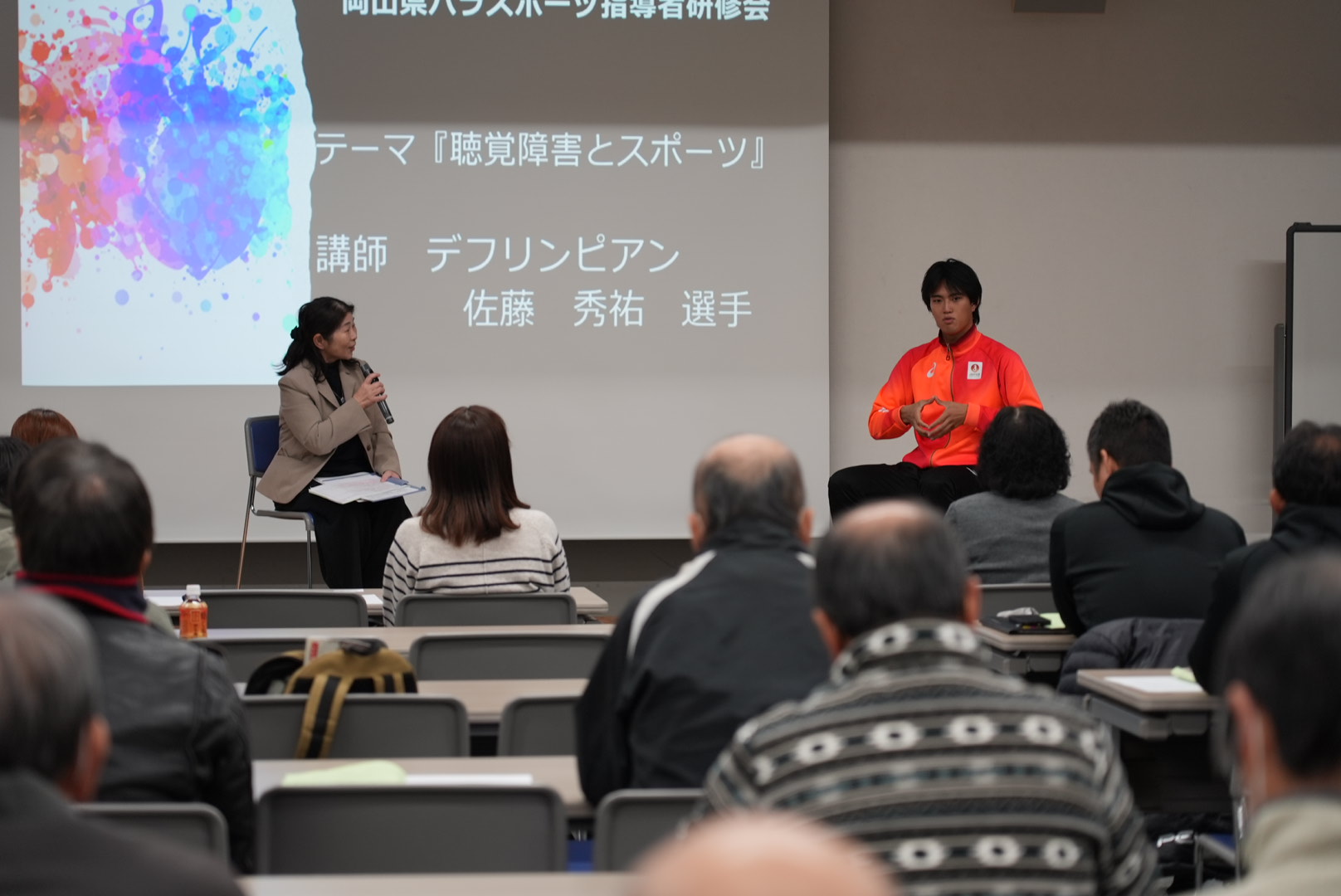2026年1月10日(土)、岡山県総合福祉・ボランティア・NPO会館にて行われた令和7年度第2回岡山県パラスポーツ指導者研修会にゲスト講師として弊社陸上競技部所属 佐藤秀祐選手が出演しました。