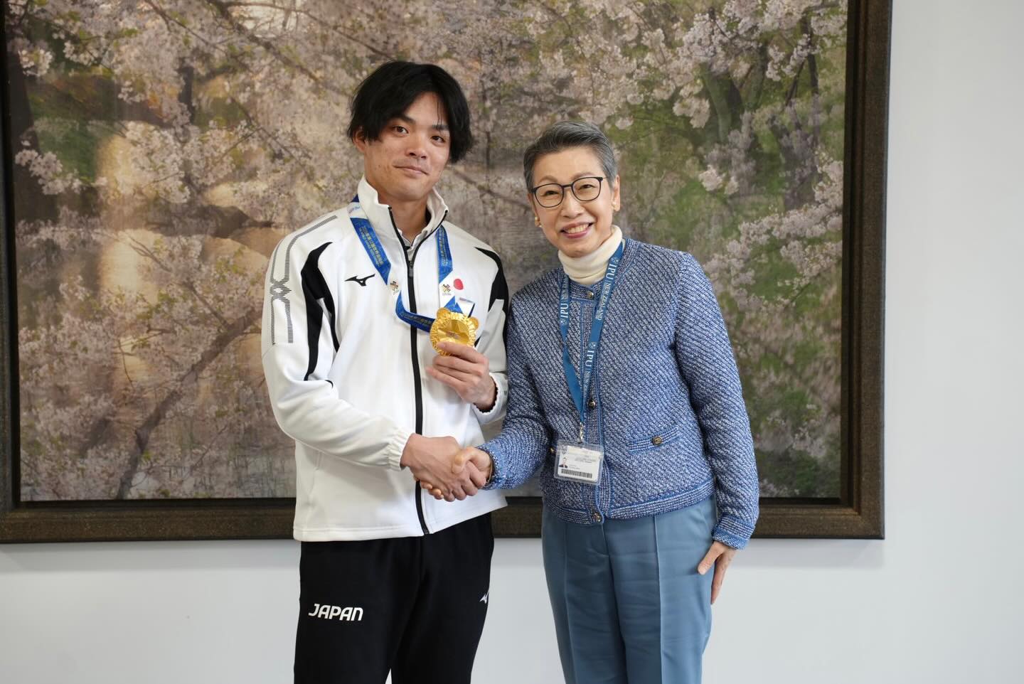 2026年1月20日、男子ソフトボール部の浜本選手が、昨年のワールドゲームズ優勝報告のため、母校であるIPU・環太平洋大学を凱旋訪問しました。