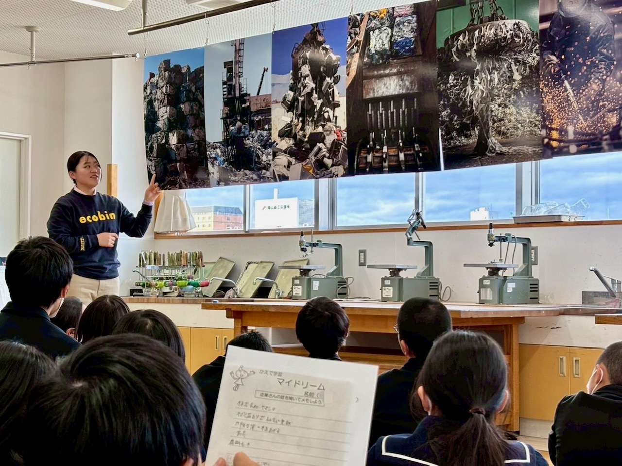 当社ブースでは、写真やパネル展示に加え、金属やプラスチックなどのリサイクル資源に実際に触れてもらいながら、リサイクルの仕事について学んでもらいました。