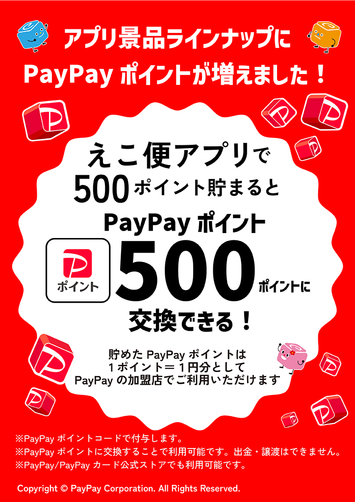 3月11日(水)より、えこ便アプリのポイント交換商品にPayPayポイントが追加されます。