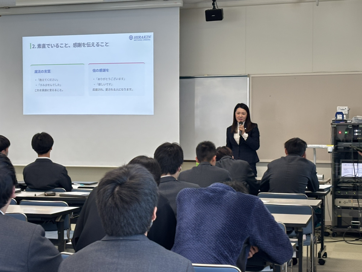 授業では、高校生のうちに身につけておくべき力や、社会人として大切な考え方・姿勢についてお話ししました。