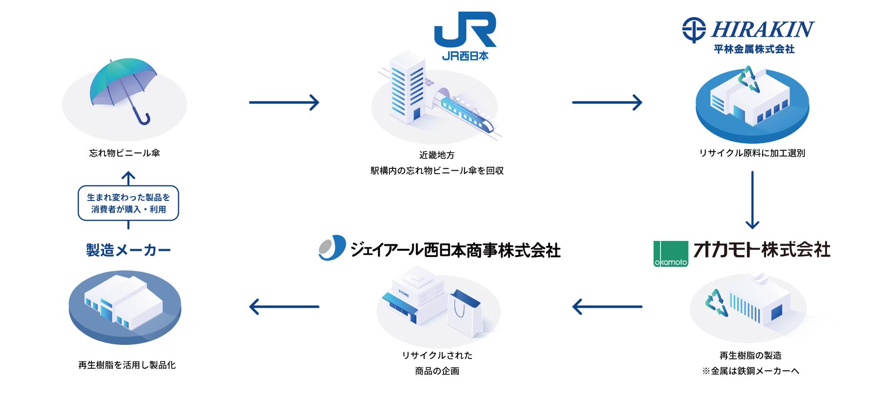 この事業は、岡山市、タイガー魔法瓶株式会社、岡山食品容器株式会社、当社が連携し、マイボトル利用促進及び再資源化のため、家庭で不要になったステンレス製ボトルを市内の学校や公民館にて回収し、リサイクルする産官連携事業になります。